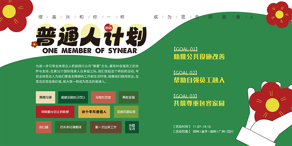 為進(jìn)一步傳播針對(duì)自強(qiáng)員工的“尊重”文化,引導(dǎo)全體思念人積極踐行“尊重”文化,展現(xiàn)對(duì)自強(qiáng)員工的關(guān)懷與支持,在第32個(gè)國(guó)際殘疾人日來(lái)臨之際,思念食品組織開(kāi)展了面向全國(guó)各生產(chǎn)基地的自強(qiáng)員工關(guān)愛(ài)活動(dòng),號(hào)召全體思念人為他們營(yíng)造無(wú)障礙的工作和生活環(huán)境,助推他們穩(wěn)崗就業(yè),在思念實(shí)現(xiàn)自我價(jià)值,和大家一樣成為思念的普通人。